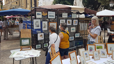 Nombreux passants après leur marché contemplaient les œuvres. Quelques photos: